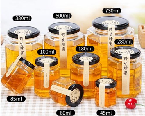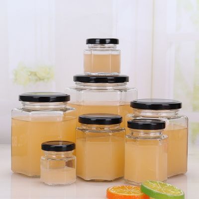 Оптовые бутылки хранения стекла гайки соленья соуса Chili варенья банки полигона шестиугольника с крышкой волочения
