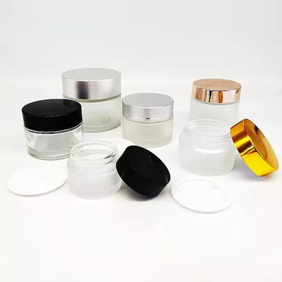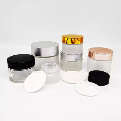 Оптовый ясный косметический стеклянный опарник с серебряными контейнерами крышки 100ml роскошными стеклянными косметическими