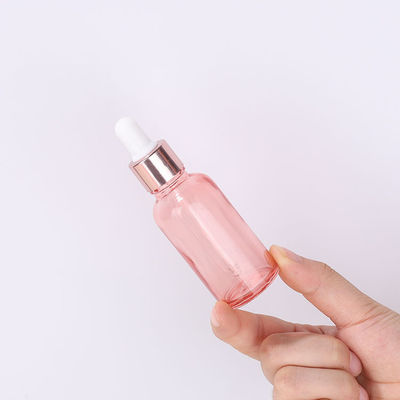 Стеклянные косметические контейнеры украшают дырочками розовую бутылку капельницы эфирного масла ролика