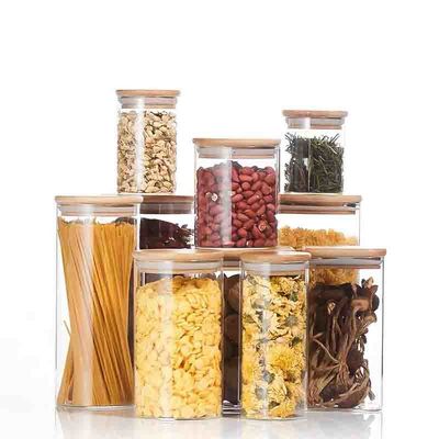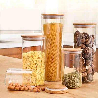 Стеклянное хранение разливает хранение по бутылкам сухофрукта хранения опарника воздуха плотное стеклянное с бамбуковой крышкой